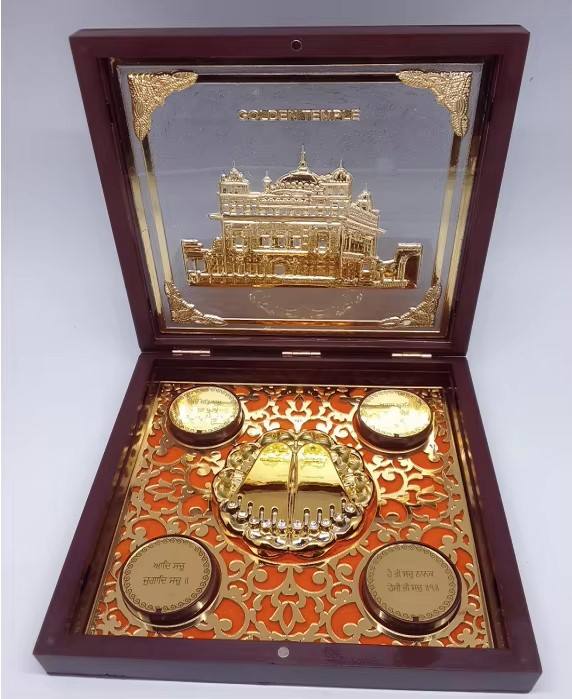 กล่องงานฝีมือศิลปะสแตนเลสสตีลสวยงาม ดีไซน์วัดทอง ประดับเหรียญชารันปาดูกา สำหรับงานแต่งงาน วันเกิด และการอวยพร