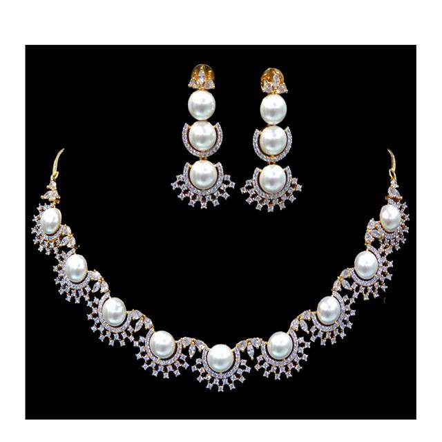 Beautiful Stone Necklace Set Statement Silver Finish Jewelry Set with Royal White Zircon Brass Necklace Set for Wedding Party