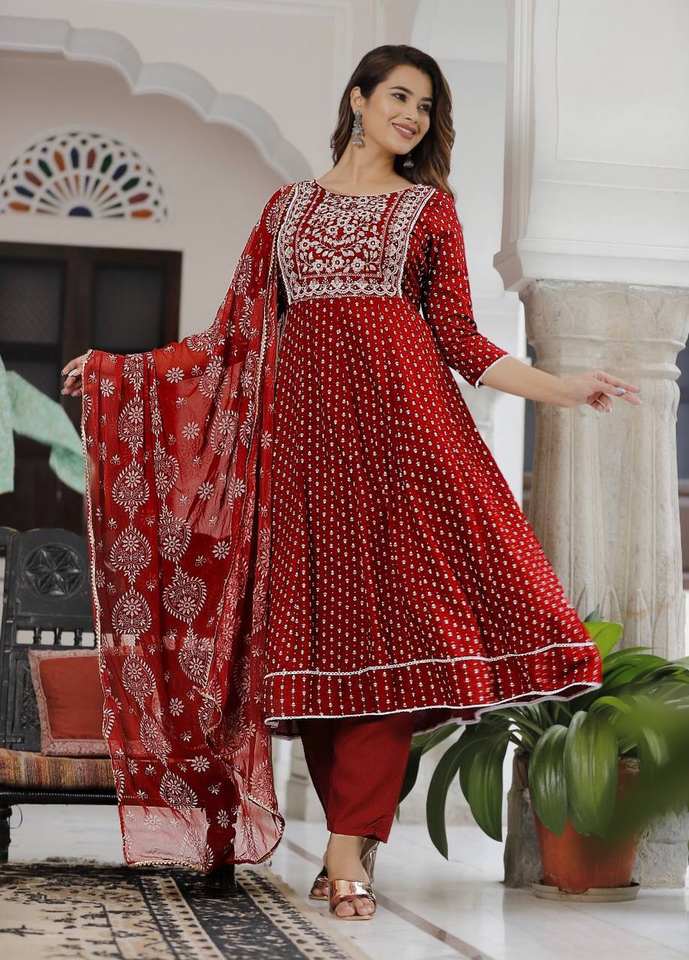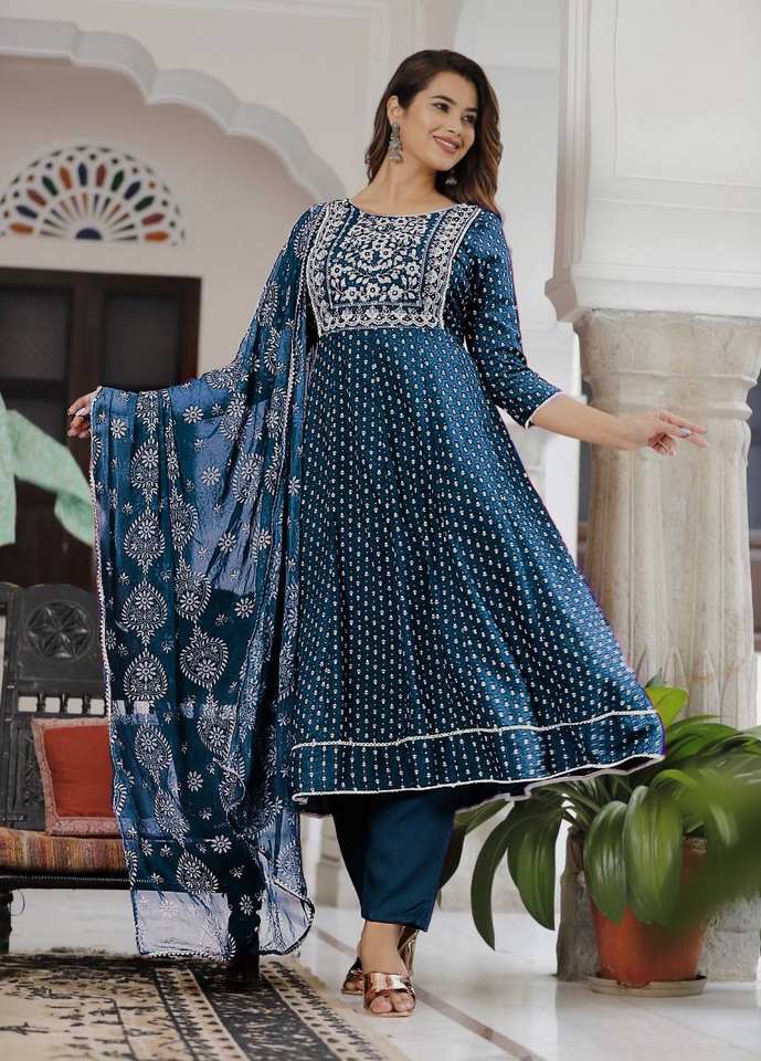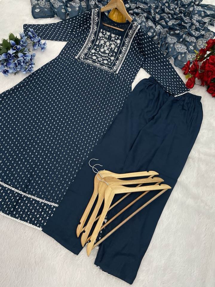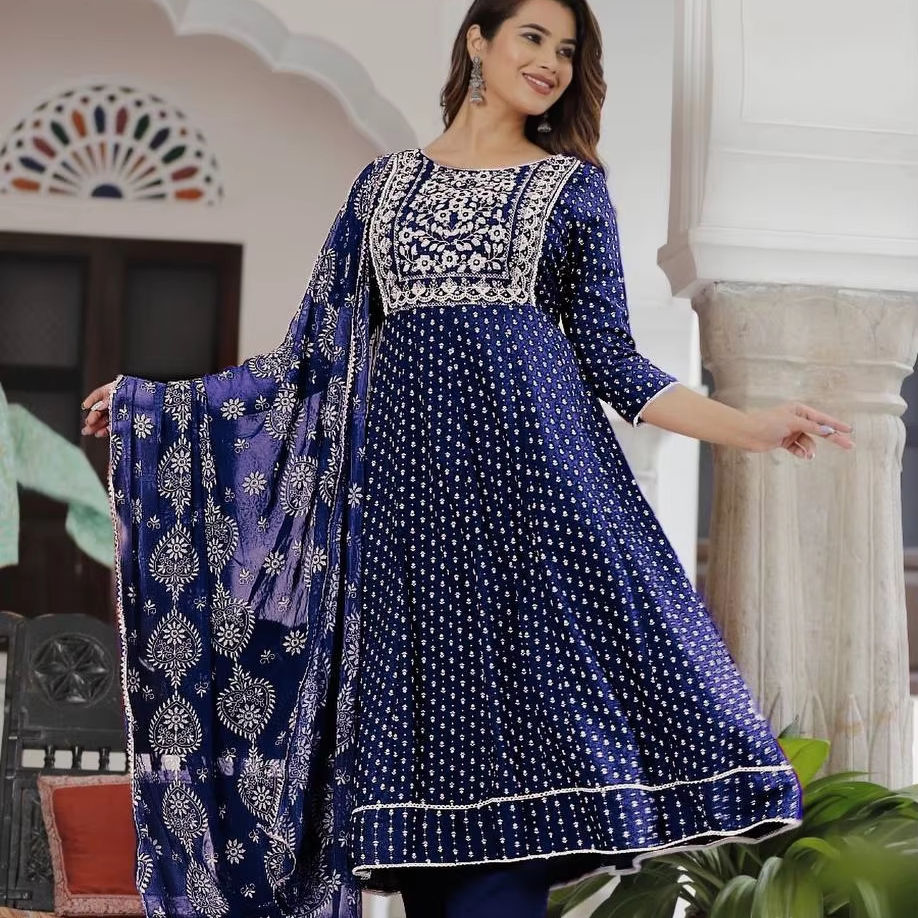 ชุดสูทที่สวยงามและ dupatta พร้อมการปักด้วยการพิมพ์ฟอยล์