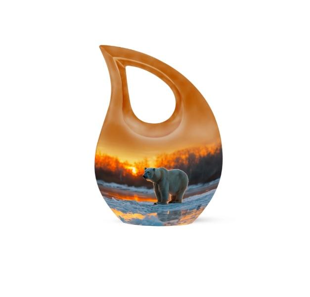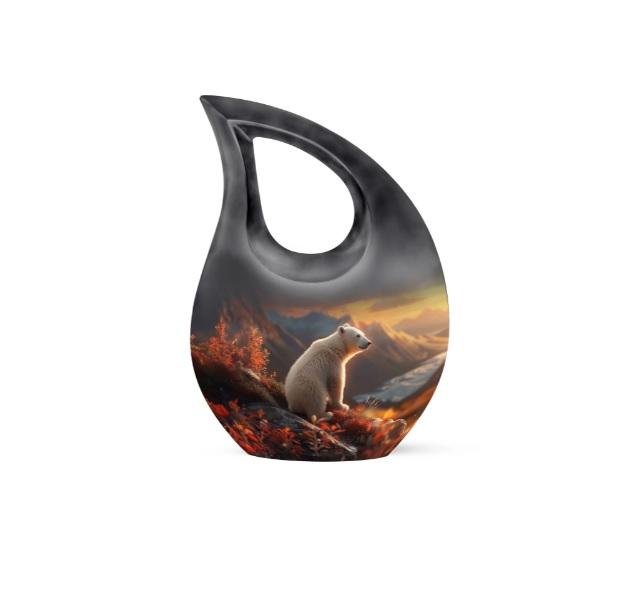 โกศบรรจุอัฐิรูปหยดน้ำพระอาทิตย์ตกสวยงาม พร้อมกางเขน สำหรับบรรจุอัฐิคน โกศโลหะขนาดเล็กสำหรับเก็บอัฐิเป็นที่ระลึก