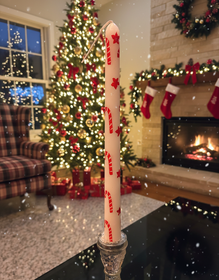 เทียนหอมทำมือจากขี้ผึ้งถั่วเหลืองสวยงาม พร้อมดาวสีแดงสดใส สร้างบรรยากาศคริสต์มาสคลาสสิกแสนสนุก ไร้ควัน เหมาะสำหรับตกแต่งงานเลี้ยงอาหารค่ำ