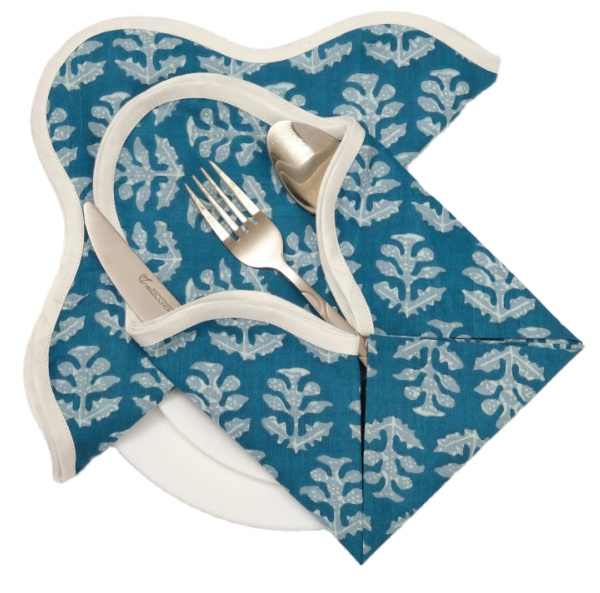 ผ้าเช็ดปากผ้าฝ้ายพิมพ์ลายสีน้ำเงินอมเขียวสำหรับร้านอาหารโรงแรมและบ้านสไตล์โมเดิร์น