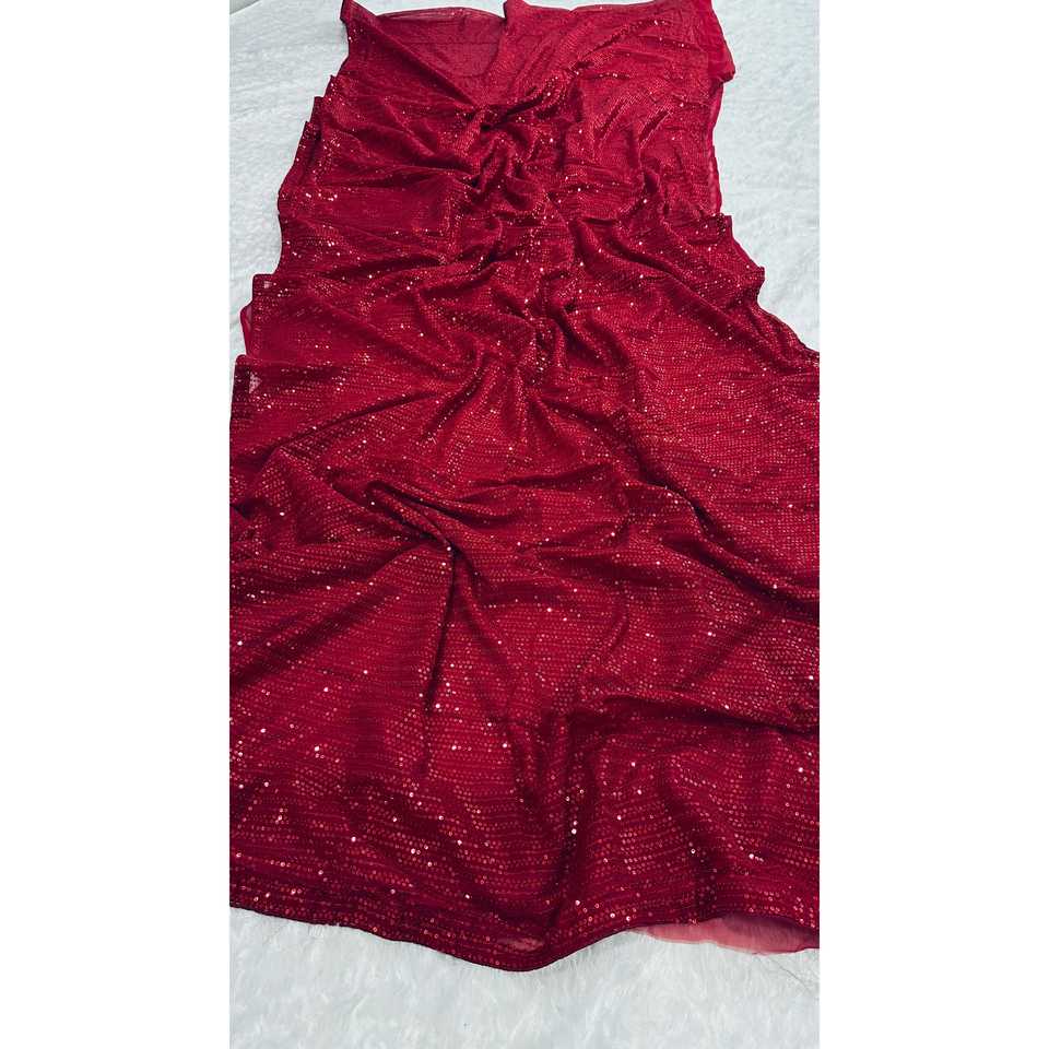 ชุดส่าหรีแบบดั้งเดิมของจีนที่สวยงามสำหรับงานปาร์ตี้ ประดับด้วยงานปักเลื่อม