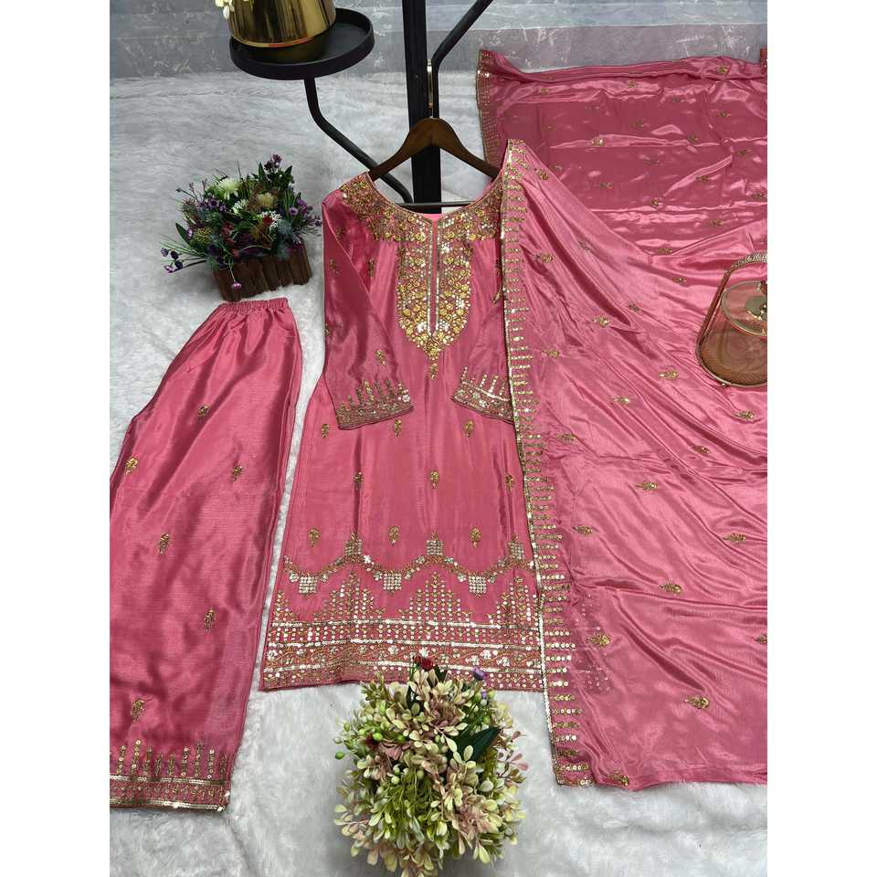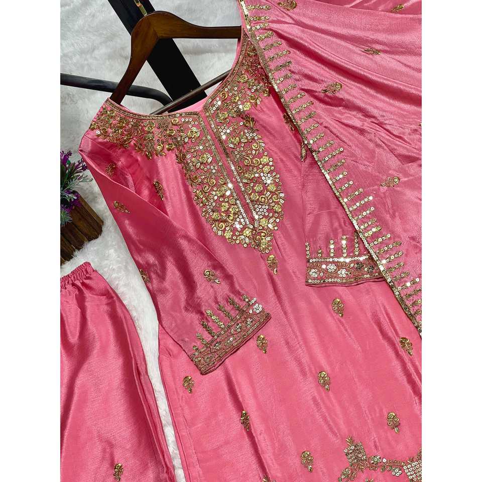 ชุดมุสลิมแบบดั้งเดิมที่สวยงามและเครื่องประดับ ชุดท็อป-ปาลาซโซ และผ้าคลุมไหล่ พร้อมงานปักเลื่อม