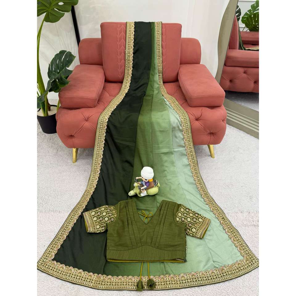 ชุดส่าหรีงานปาร์ตี้แบบดั้งเดิมของชาวมุสลิมที่สวยงาม พร้อมงานปักด้วยด้ายและลูกปัด