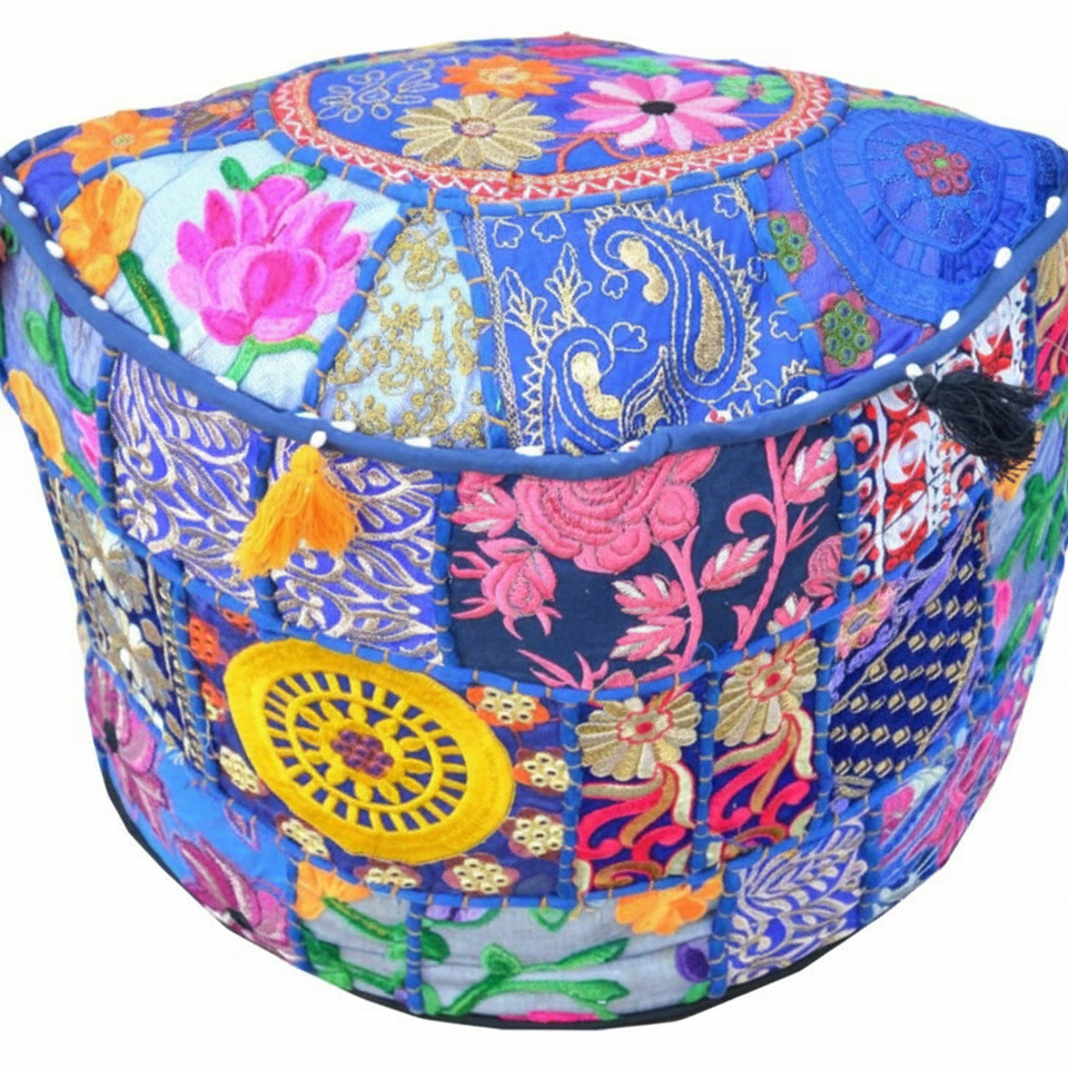 ปลอกเบาะรองนั่งทรงกลมแบบดึงได้ ทำจากผ้าฝ้ายปักลายแบบดั้งเดิมสไตล์บันจารา งานฝีมือสวยงาม