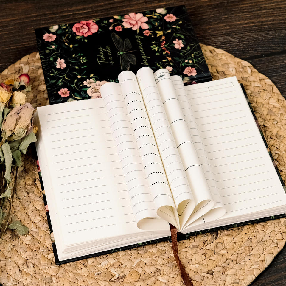สมุดบันทึกปกแข็งลายดอกกุหลาบสวยงาม ซีรีส์ทรัป พร้อมเข้าเล่มแบบเย็บด้าย เหมาะสำหรับจดบันทึกสร้างสรรค์ จดรายงานการประชุม