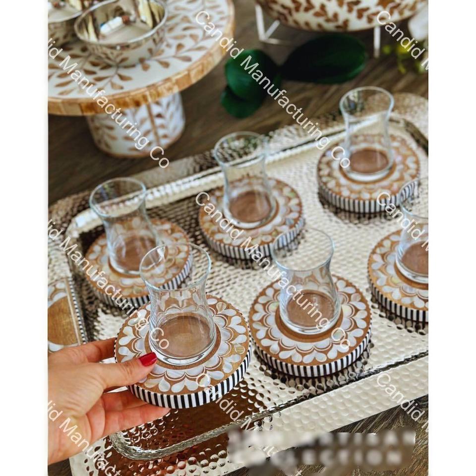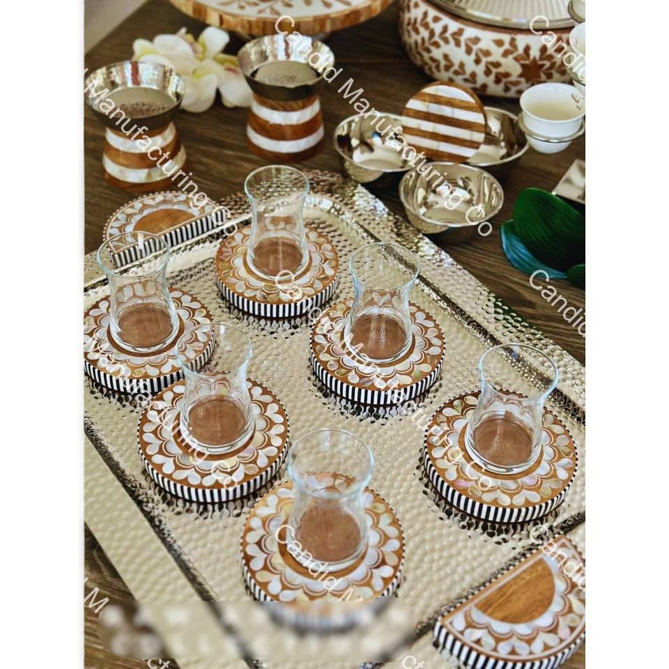 ถาดไม้ฝังลายดอกไม้ทรงกลมสวยงาม จากผู้ผลิตในอินเดีย ราคาดีที่สุด