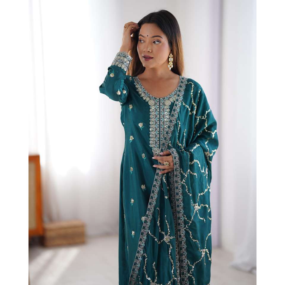 ชุดเสื้อไซส์ XL ของผู้หญิงปักลายมีลำดับแบบ dupatta