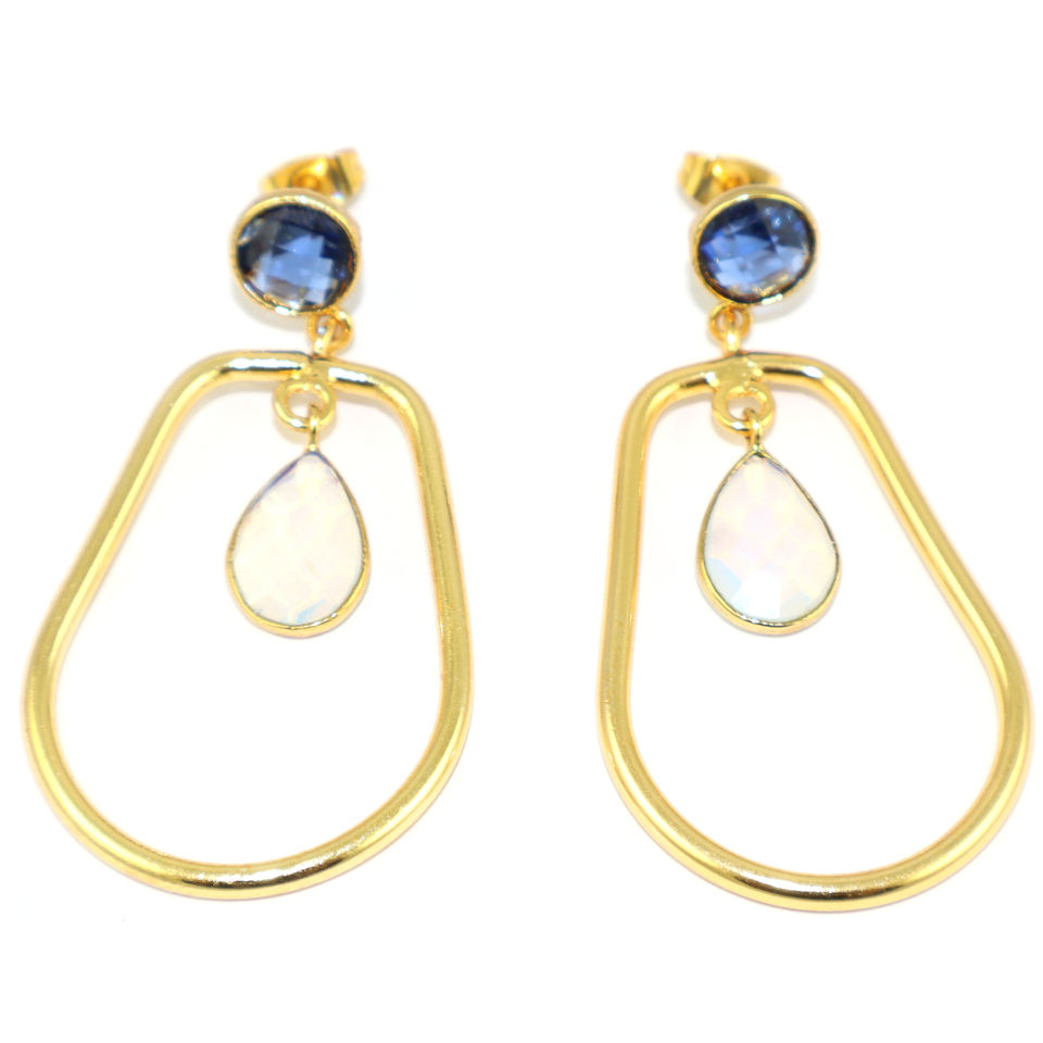 ต่างหูทรงหยดน้ำประดับพลอยบลูแซฟไฟร์โอปาไลต์ไฮโดรควอตซ์รูปทรงแฟนซี ดีไซน์สวยงามทันสมัย ชุบทอง 22K บนโลหะทองเหลือง ขายส่ง