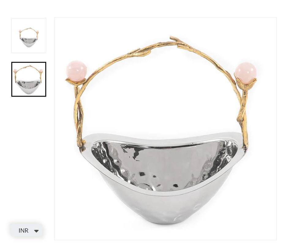 ชามโลหะตกแต่งทันสมัยที่สวยงามทันสมัยพร้อมที่จับสีทองหรูหราโต๊ะวางกลางโต๊ะกลางที่มีสไตล์