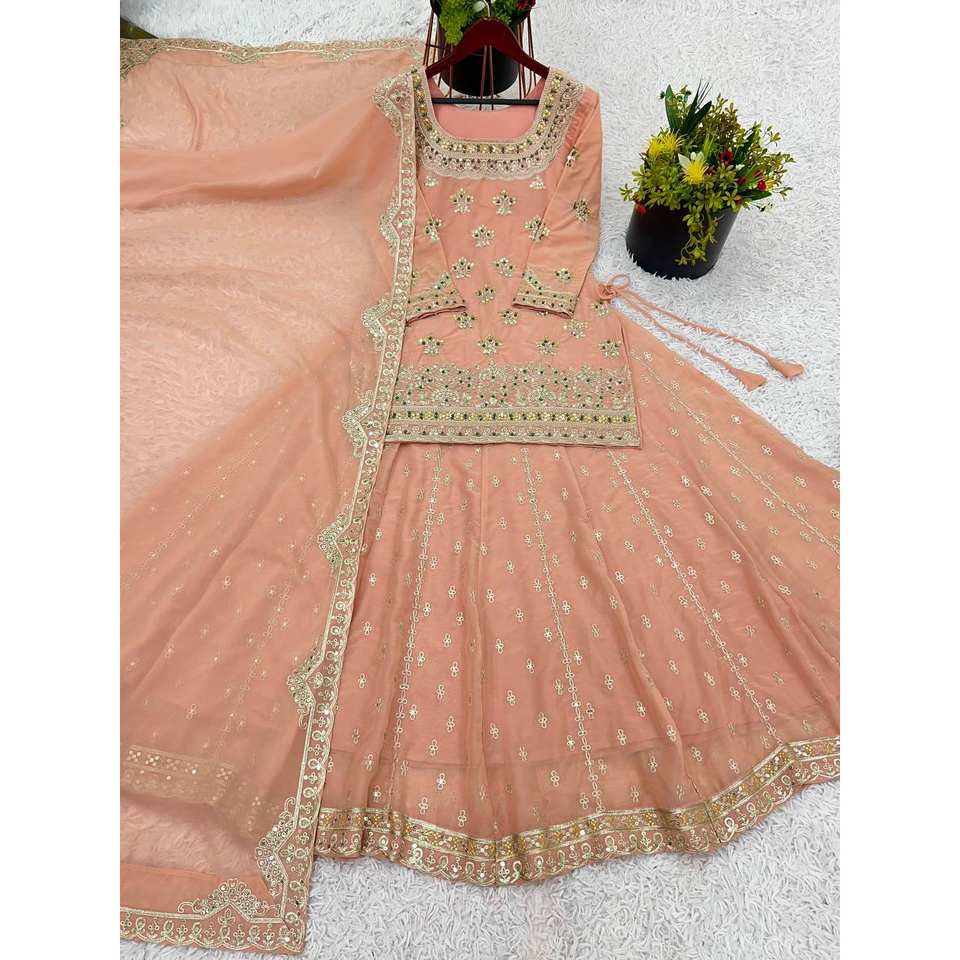 ชุดเลเฮนกาอินเดียและปากีสถานสุดหรูทันสมัย พร้อมผ้าคลุมไหล่ ดีไซน์สง่างาม