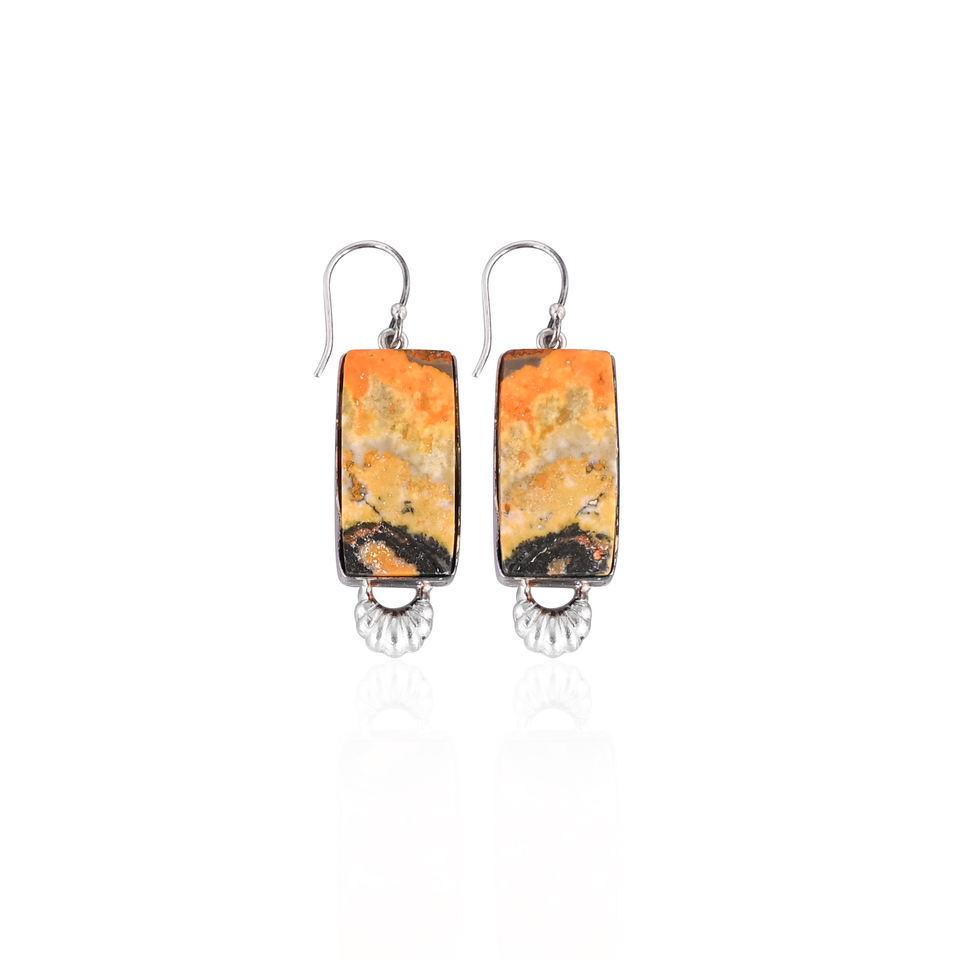 Beautiful Trendy Natural Bumble Bee Jasper Oval Shape Silver Plated Bezel Earring Brass Earring Wholesale for Women Girls