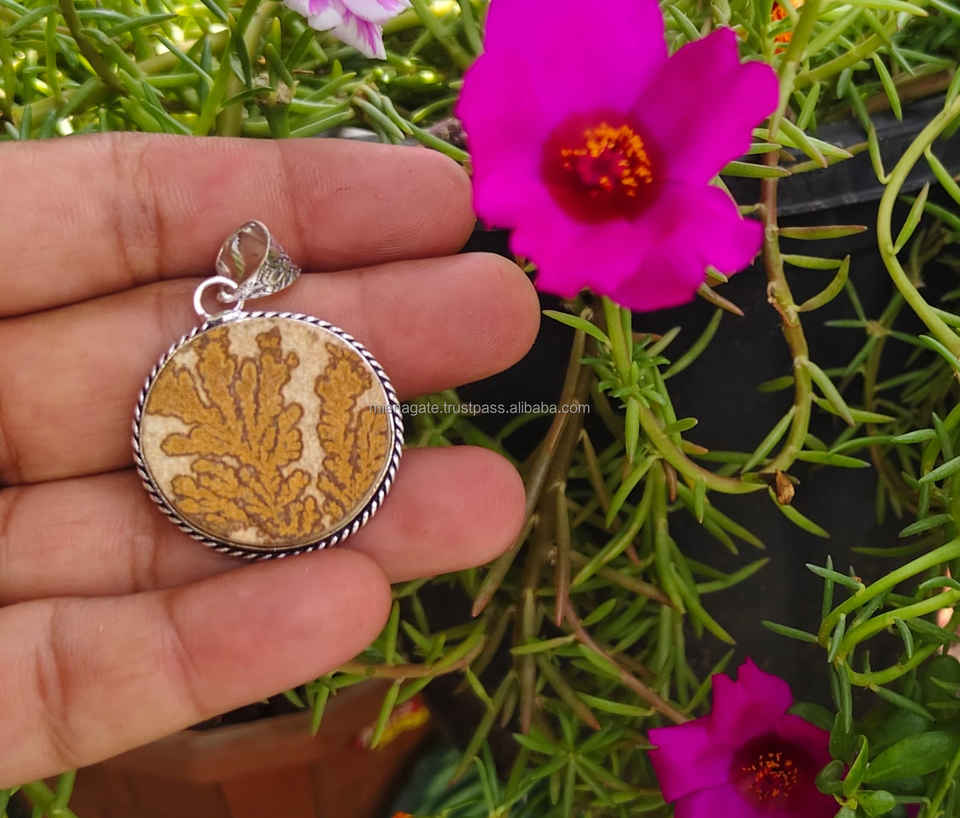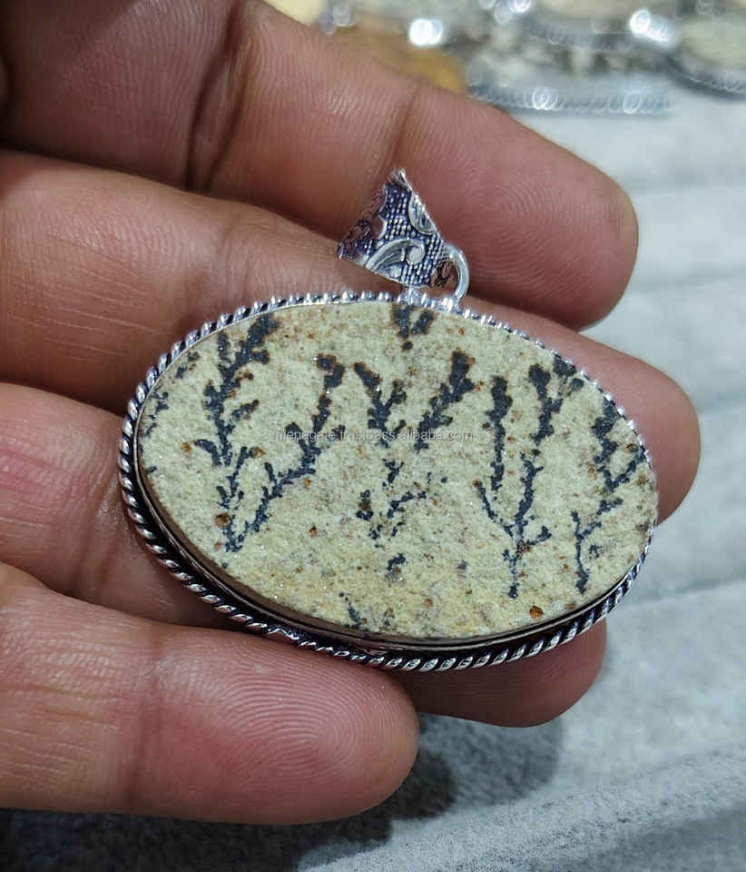 Psilomelane จี้อัญมณี dendritic สไตล์เยอรมัน