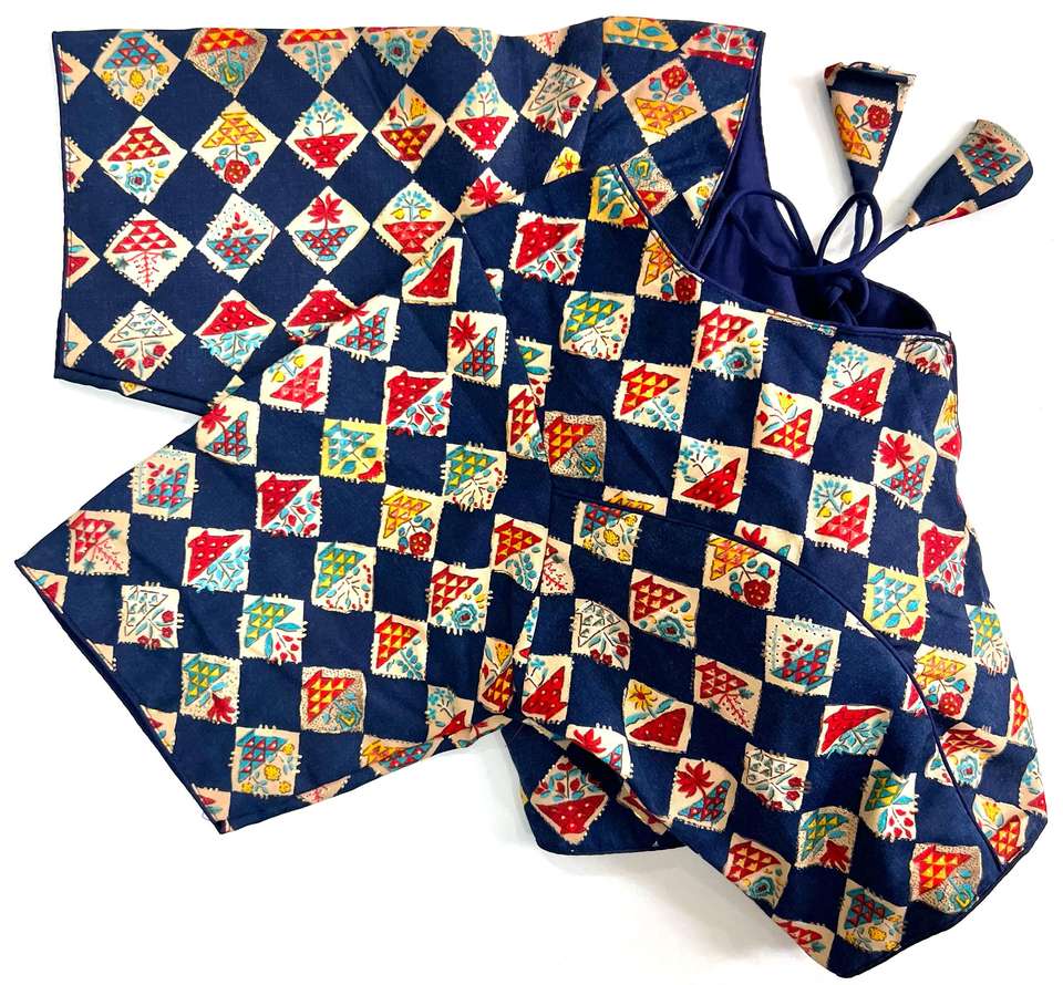 เสื้อเบลาส์ทางการคอวีที่สวยงามสำหรับฤดูร้อนพร้อมสีย้อมธรรมชาติพิมพ์ลาย warli เสื้อซับในแบบเรียบง่ายโดย ASTAR