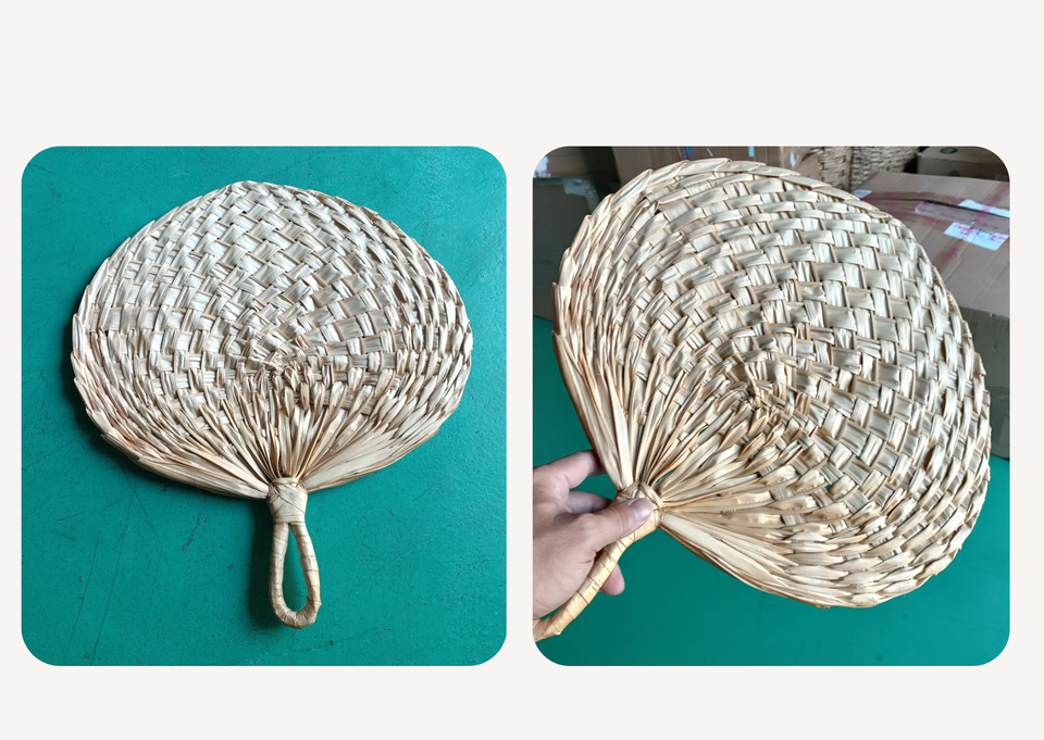 โรงงานผลิตพัดเวียดนามแสนสวย ทำจากใบปาล์มสาน เหมาะสำหรับตกแต่งงานแต่งงานสไตล์โบโฮชิค และงานปาร์ตี้กลางแจ้งในสวน
