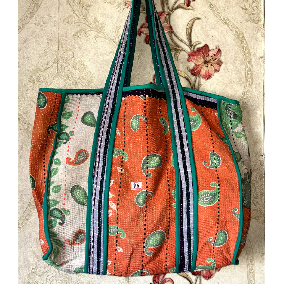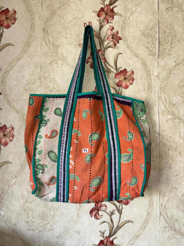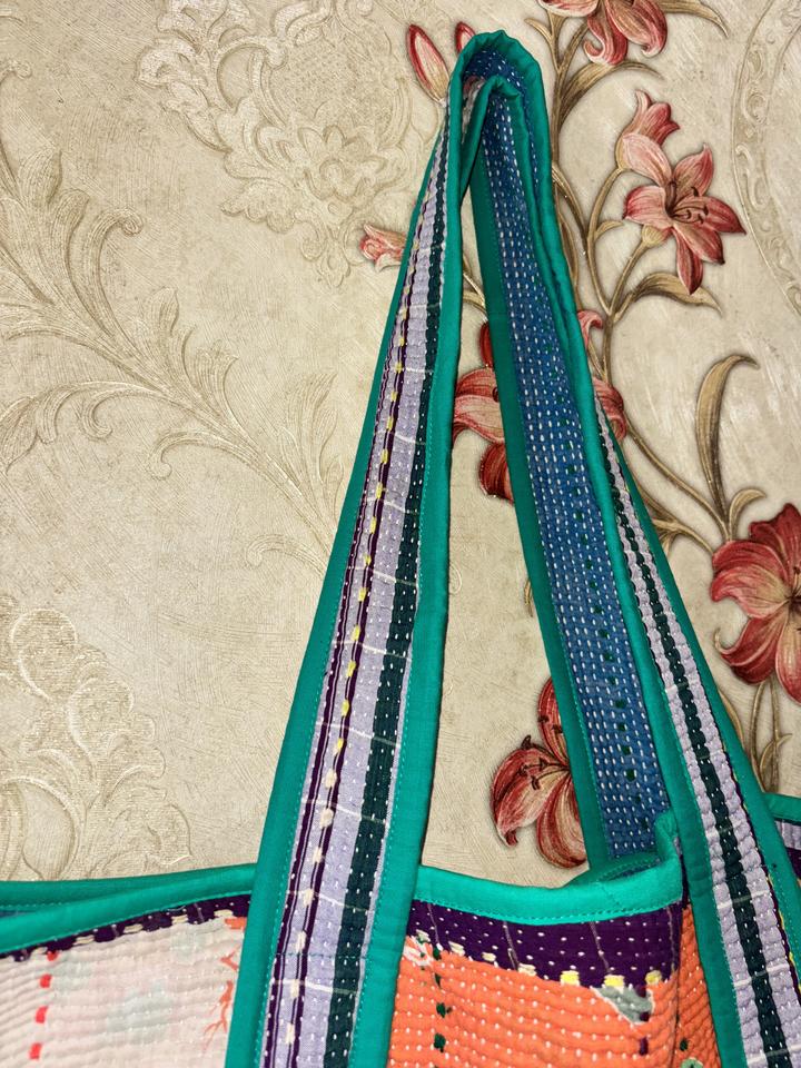 กระเป๋าโท้ทผ้าฝ้ายวินเทจสวยๆสำหรับผู้หญิงแฮนด์เมดสไตล์อินเดียแคนธาช้อปปิ้งขนาดใหญ่สไตล์ลำลอง