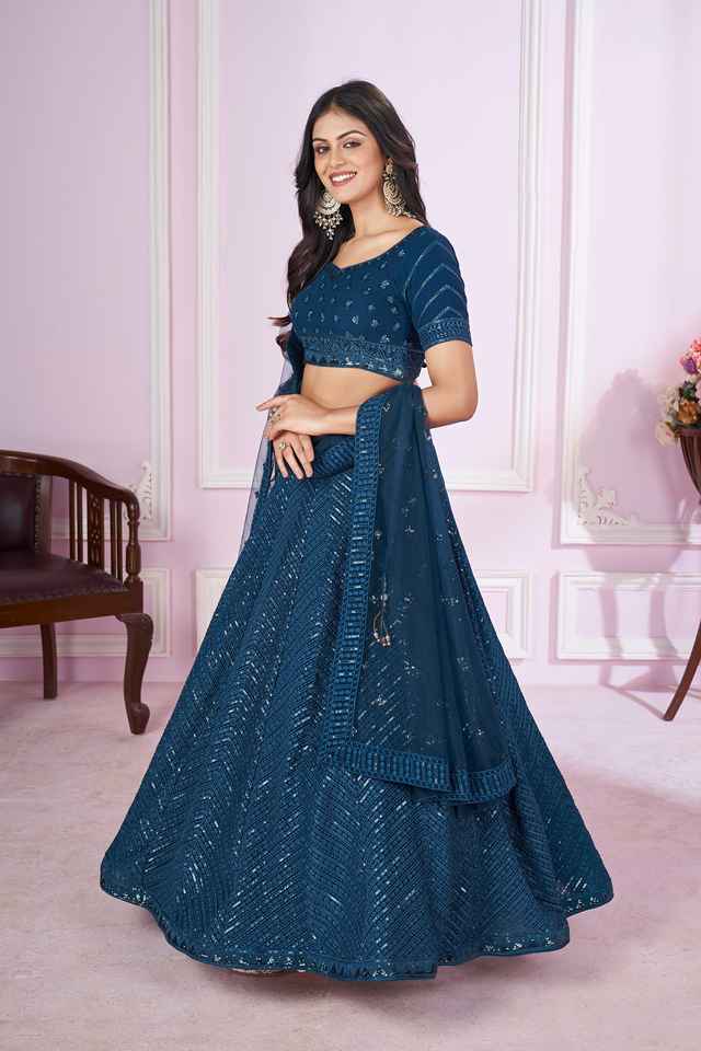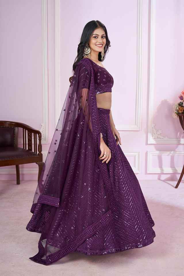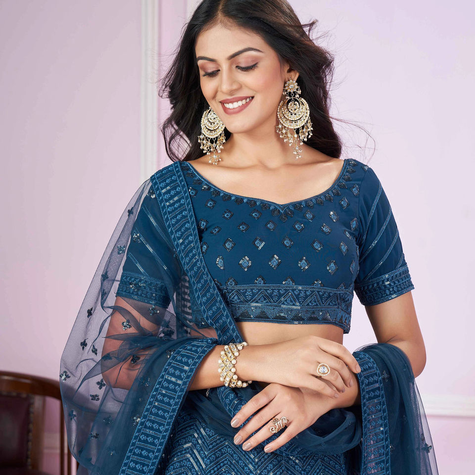ชุดแต่งงานที่สวยงาม lehenga กับเลื่อมงานปักด้าย