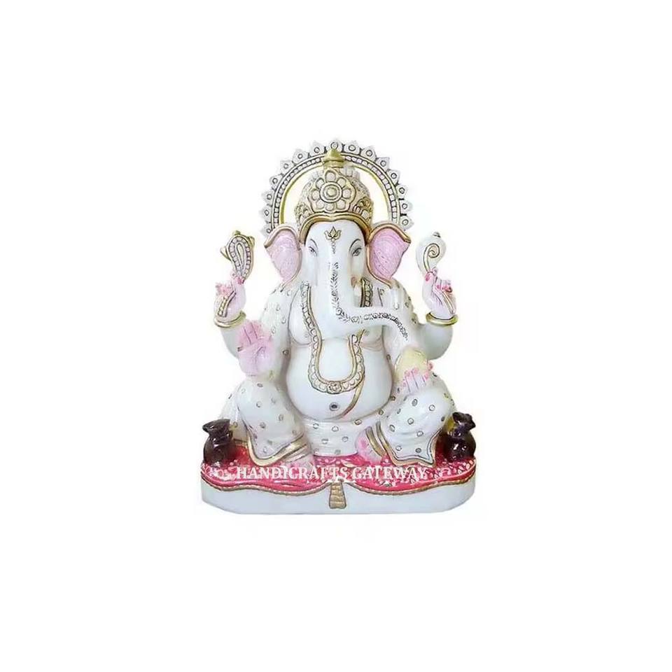 รูปปั้นพระพิฆเนศหินอ่อนสีขาวที่สวยงามพร้อมรูปปั้นนั่งสำหรับตกแต่งบ้านและบูชาผู้ผลิตและส่งออกของอินเดีย