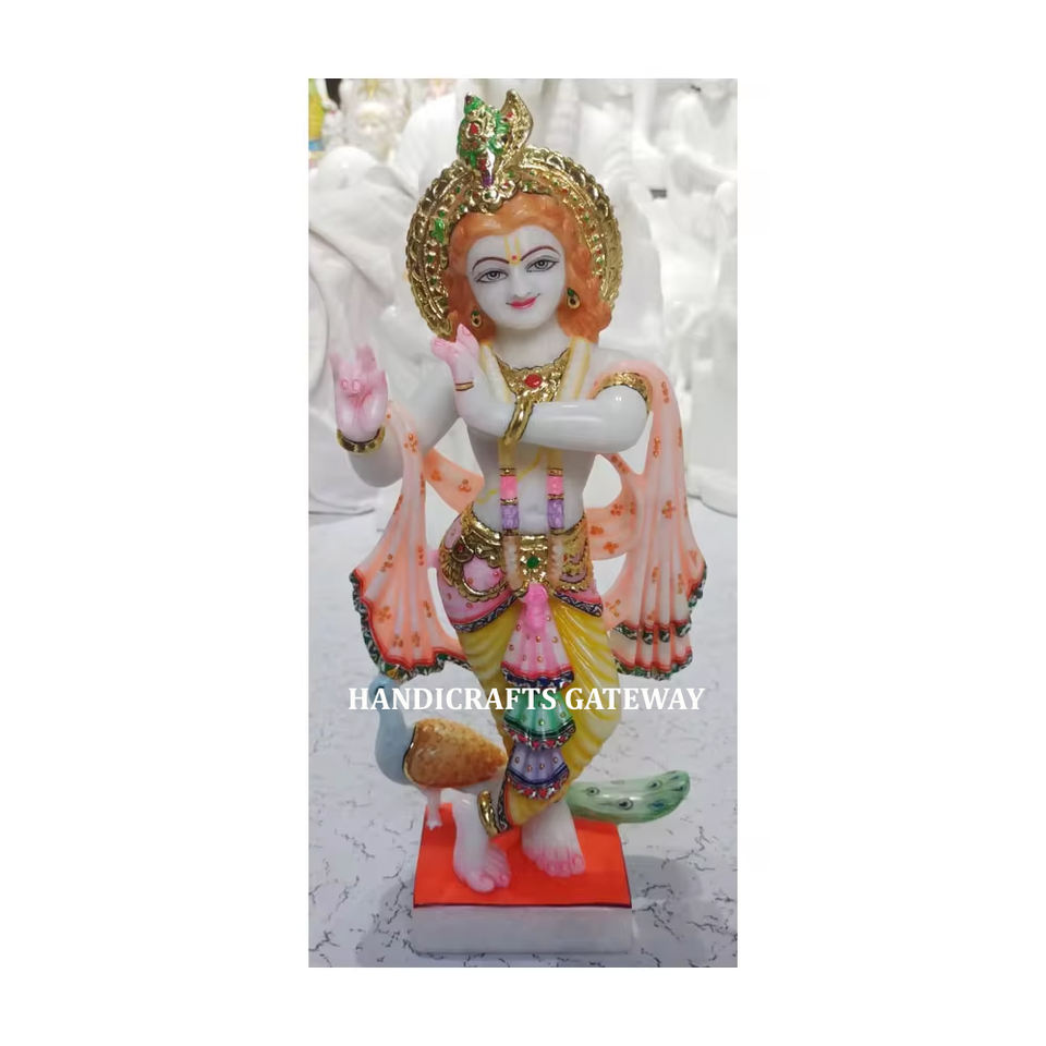 Beautiful White Marble God Krishna Standing Religious Statue Worship for Business Gift and Home Decorative Import and Export