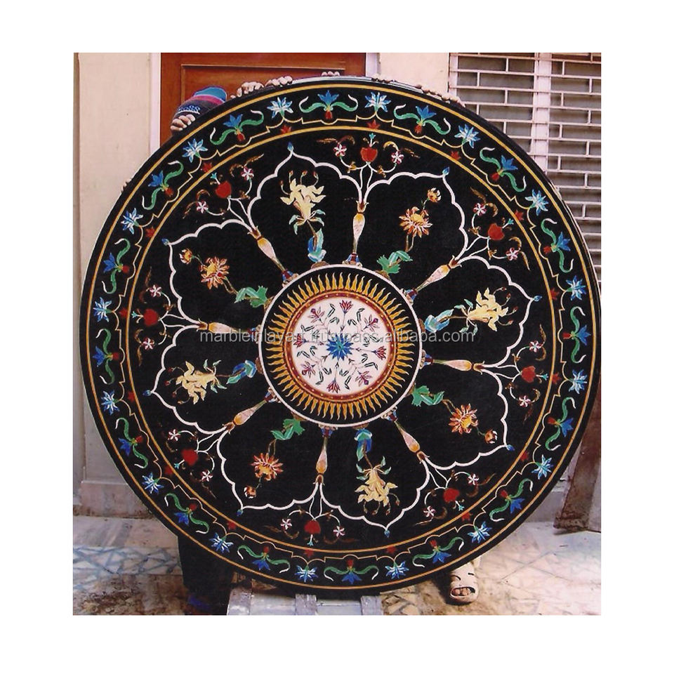 ชื่อสินค้า:ท็อปโต๊ะอาหารหินอ่อนสีขาวลายฝังสวยงาม, ท็อปโต๊ะกลม