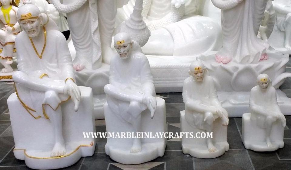 รูปปั้นศักดิ์สิทธิ์ไสบาบา ทำจากหินอ่อนสีขาวสวยงาม งานฝีมือคุณภาพสูง ผลิตในอินเดีย สำหรับการบูชาในวัฒนธรรมฮินดู
