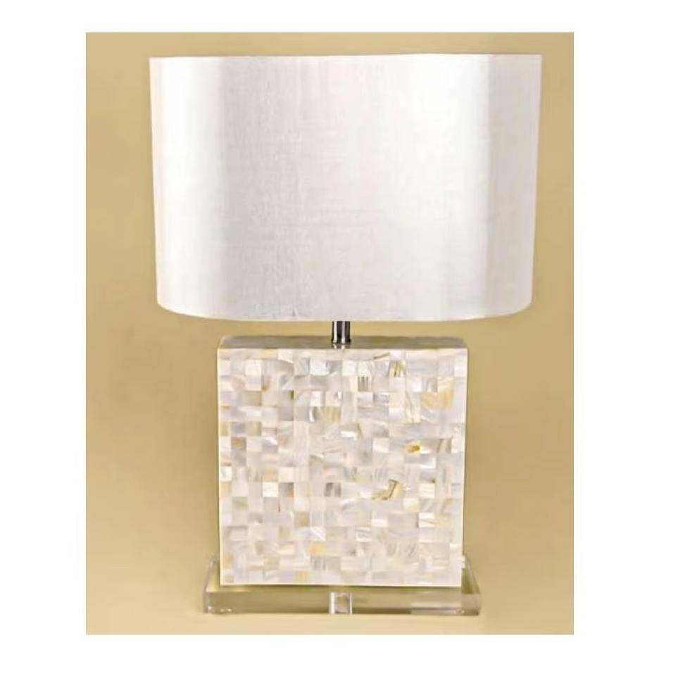 ฐานโคมไฟมุกสีขาวสวยพร้อมดีไซน์อิฐที่ทันสมัยโคมไฟข้างเตียงข้างเตียงหรูหราของตกแต่งบ้าน