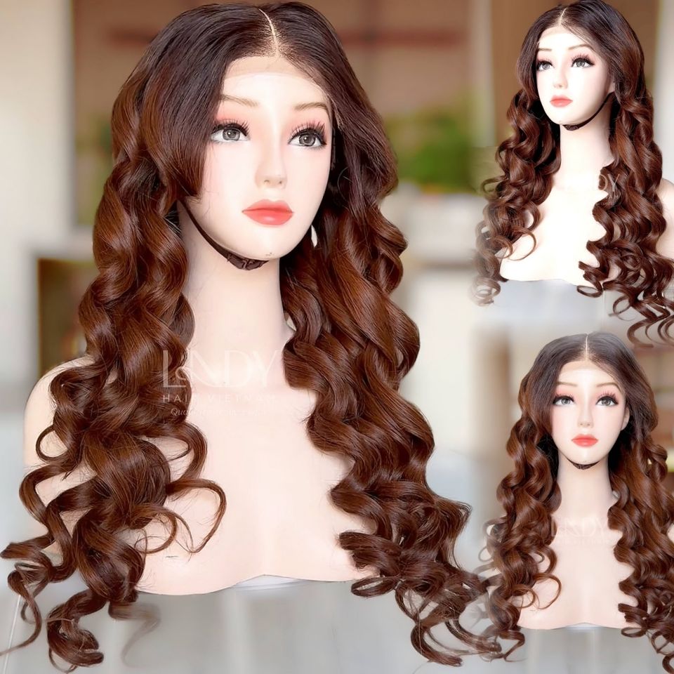 วิกผมแท้สำหรับต่อผมจริง100% เวียดนามวิกผมแท้สีน้ำตาลหยัก