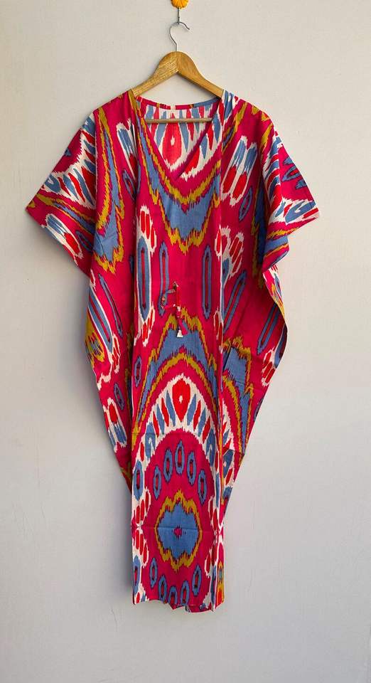 เดรสคาฟตันยาวสำหรับผู้หญิงสวยชุดเดรสโบฮีเมียนคาฟตันชุดแม็กซี่คัฟตันคอตตอนเดรสฮิปปี้