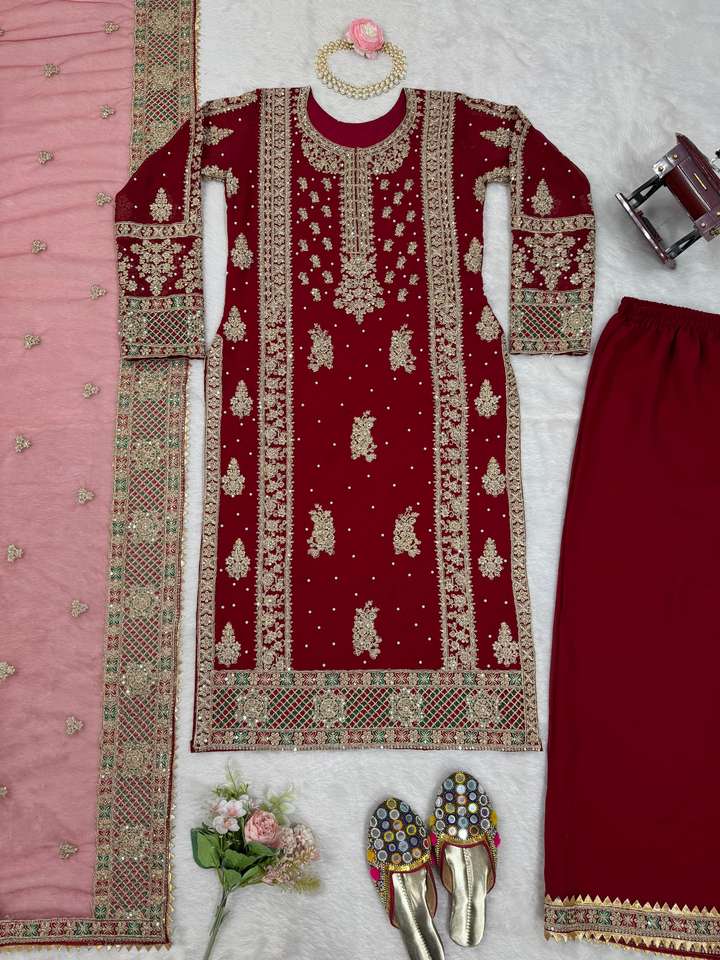 ชุดสูทขนเฟอร์เทียมดีไซน์เนอร์สำหรับผู้หญิงสวยสง่า พร้อมผ้าคลุมไหล่แบบ Palazzo-Dupatta ประดับด้วยงานปักด้ายและเลื่อมมุก เหมาะสำหรับงานปาร์ตี้