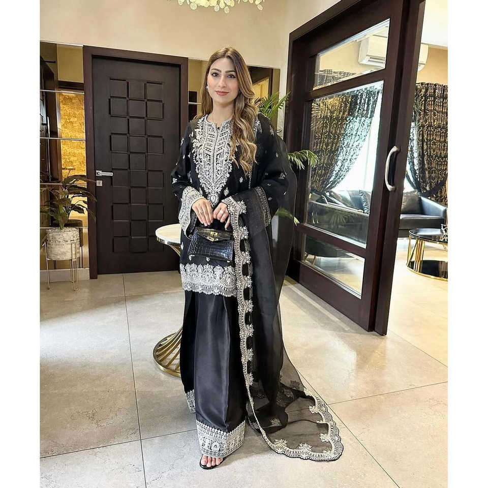 ชุดผู้หญิงที่สวยงามสำหรับงานปาร์ตี้-plazzo และ dupatta กับงานปักลำดับ