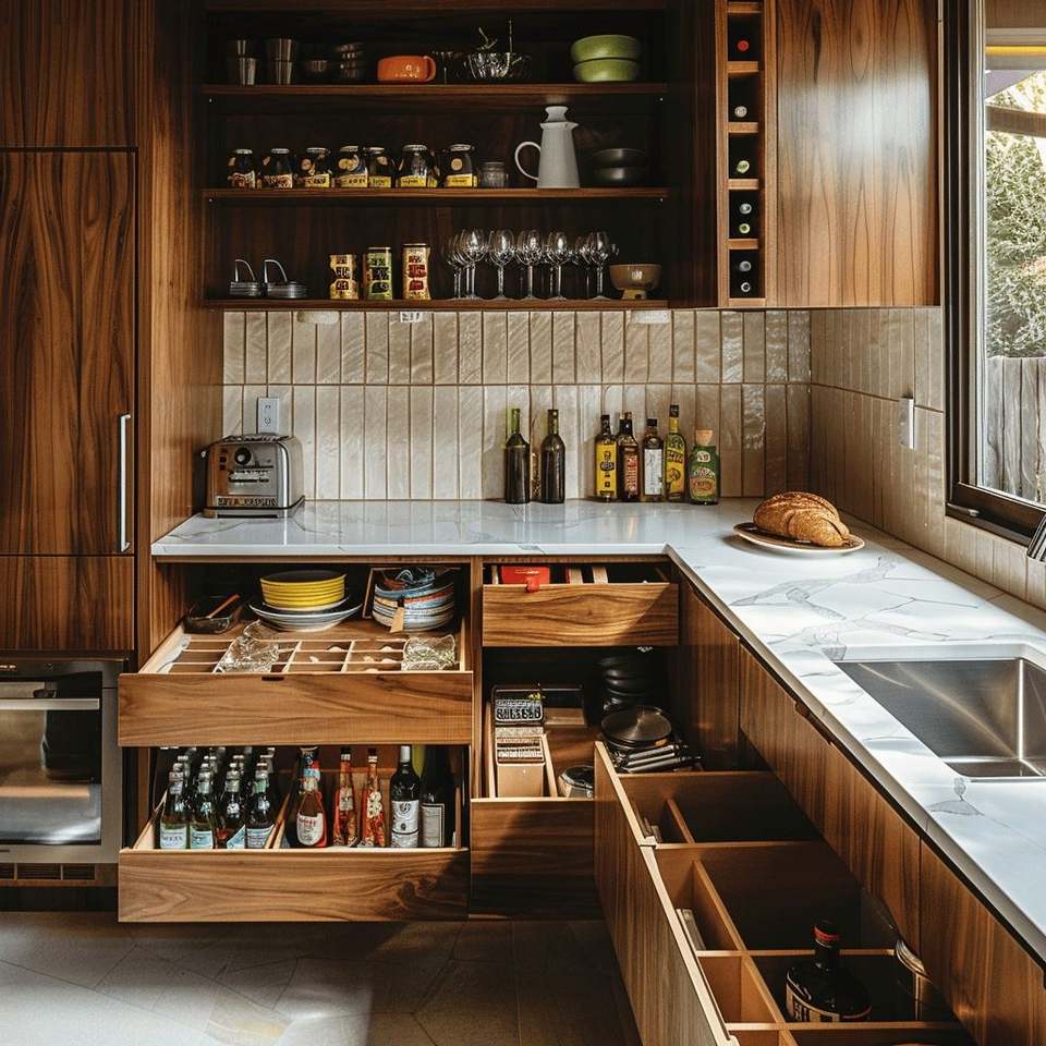 อุปกรณ์:ตะกร้าลิ้นชัก, Backsplash, ลิ้นชักสไลด์, มือจับและลูกบิด, หลักการ, นิ้วเท้าเตะ