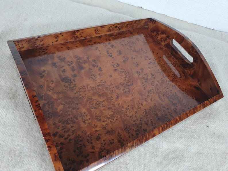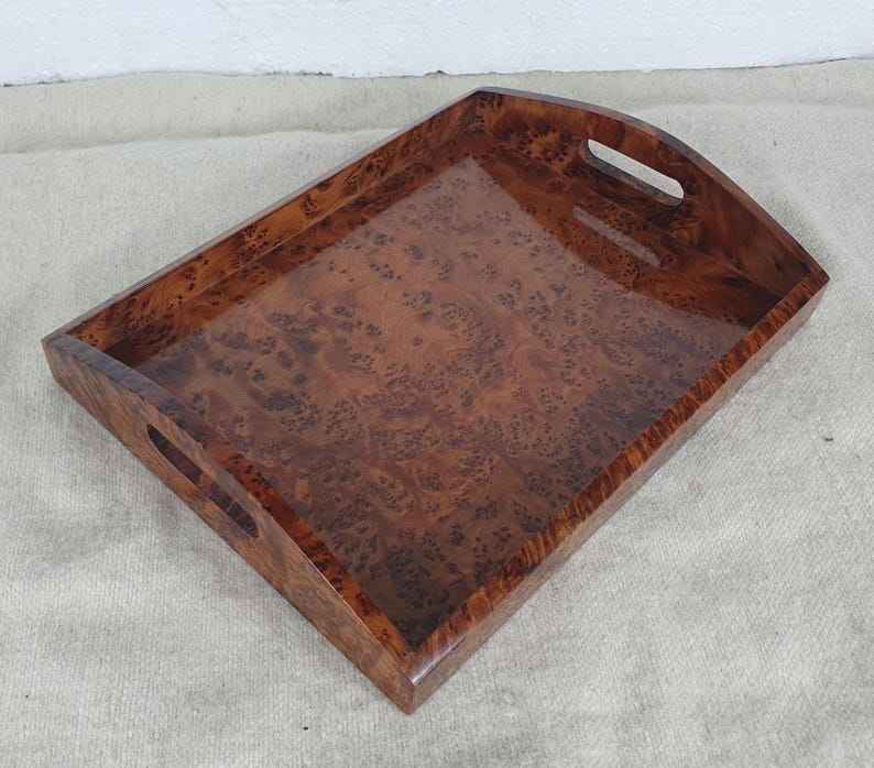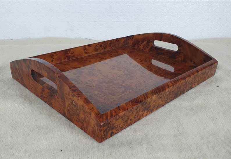 ถาดไม้สวยงามทำมือ พร้อมหูจับ สำหรับโต๊ะกาแฟ ถาดตกแต่งสไตล์เรสติก