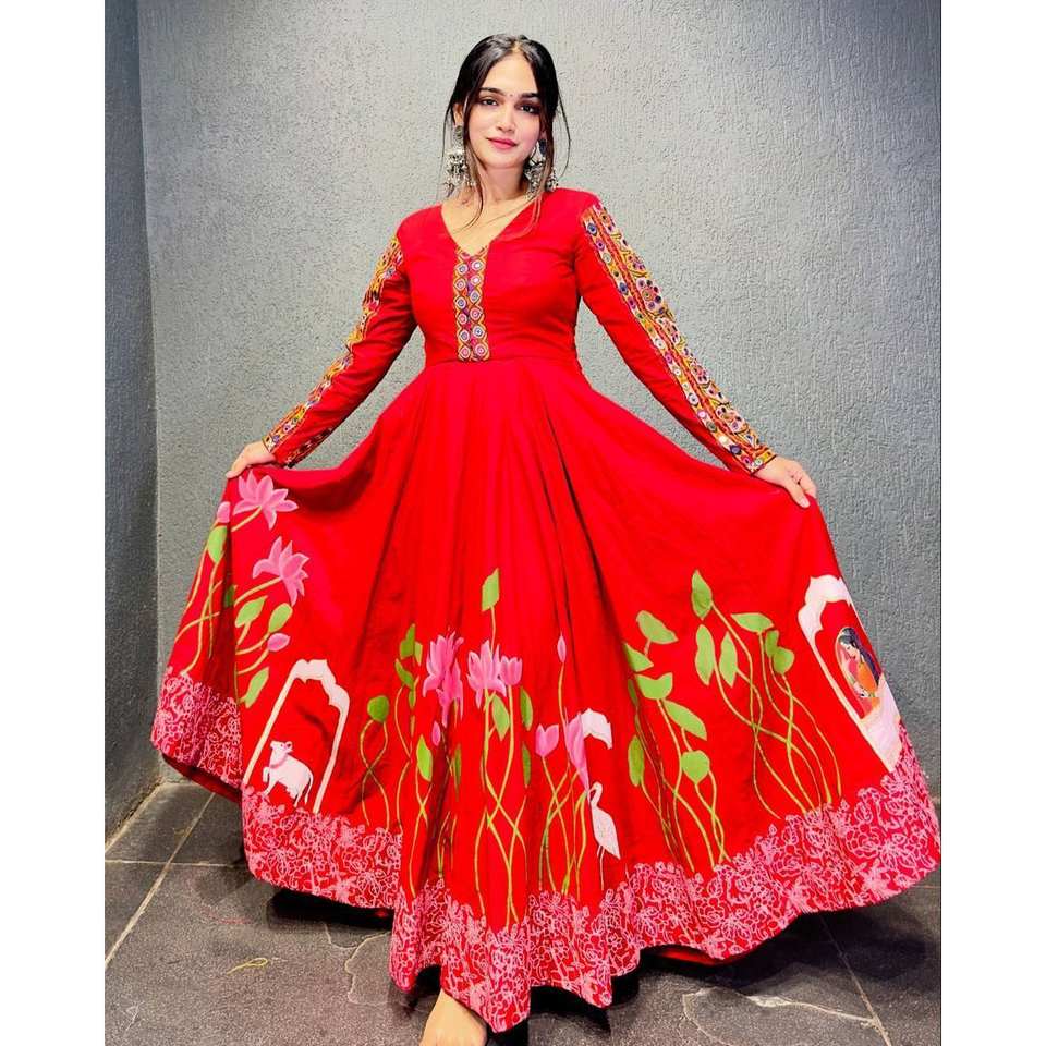 ชุดกาวน์ขนาด XL สวยและชุด dupatta พิมพ์ดิจิตอลและงานกระจกจริง
