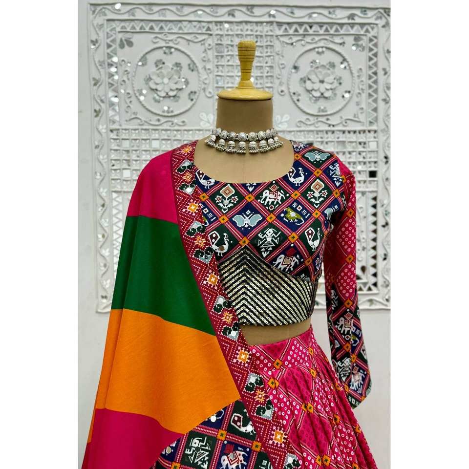 Lehenga choli พิมพ์ลายดิจิทัลแฟนซีขนาด XL สวยพร้อมงานปักตามลำดับ