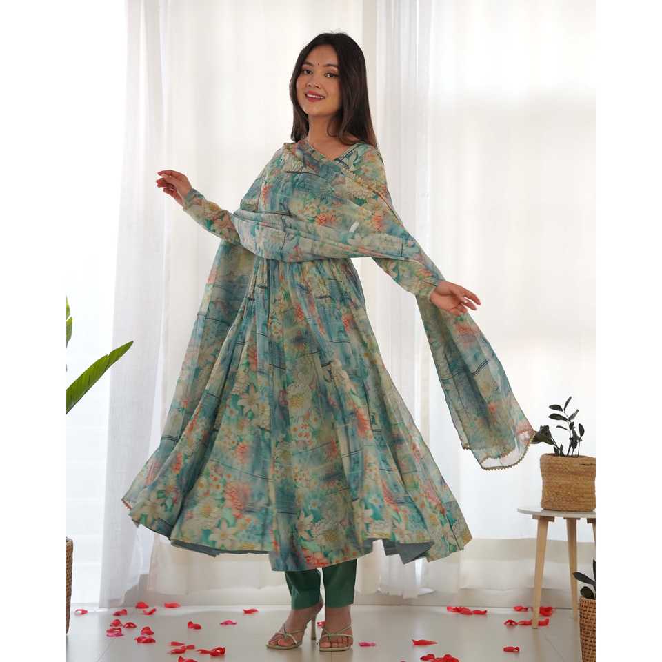 ชุด Anarkali และกางเกงขนาด XS ที่สวยงามพร้อม dupatta สำหรับสวมใส่ในงานปาร์ตี้