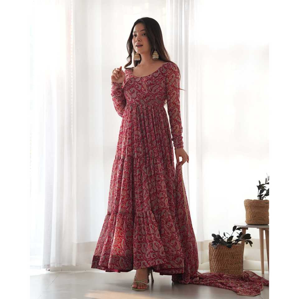ชุดเดรสอานาร์กาลีไซส์ XS สวยงามสำหรับงานปาร์ตี้ พร้อมกางเกงและผ้าคลุมไหล่สุดหรู