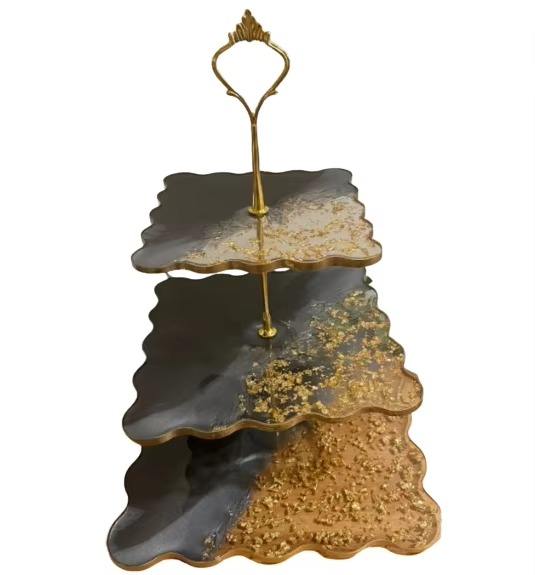 แท่นวางเค้กสีเหลืองสวยงามออกแบบจานของหวานสำหรับคัพเค้กขนมอบและโต๊ะรับประทานอาหารทำมือจากอินเดีย