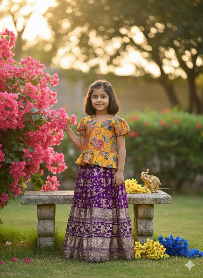 ชื่อผลิตภัณฑ์:ผ้าไหม zari สวยงามด้วยการปักสำหรับเด็ก lehenga choli