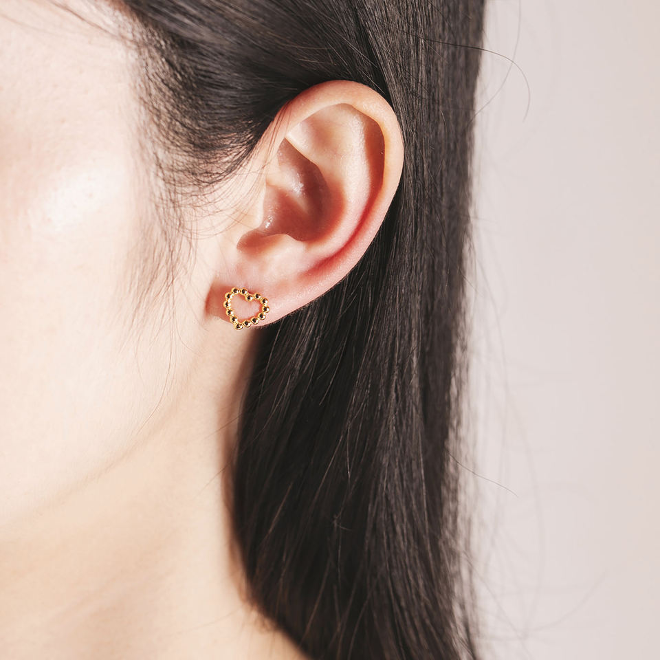 ชื่อผลิตภัณฑ์:ต่างหูเม็ดเดี่ยวทรงหัวใจแบบเปิดประดับลูกปัดสีทอง14K