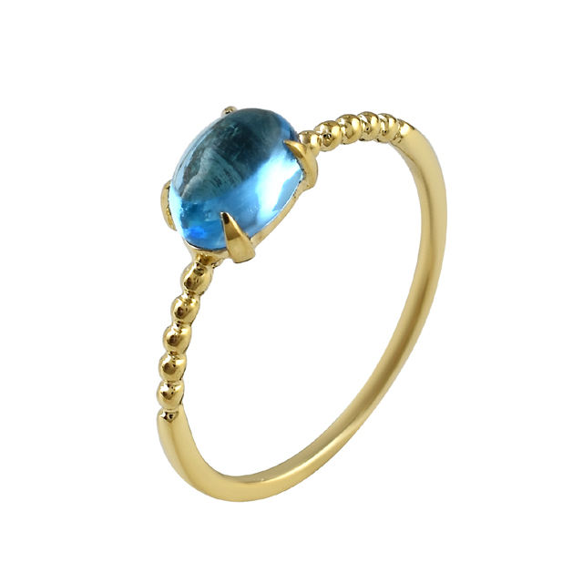 แหวน925พลอยบุษราคัมสีฟ้าชุบทองแบบคลาสสิกสวยงาม