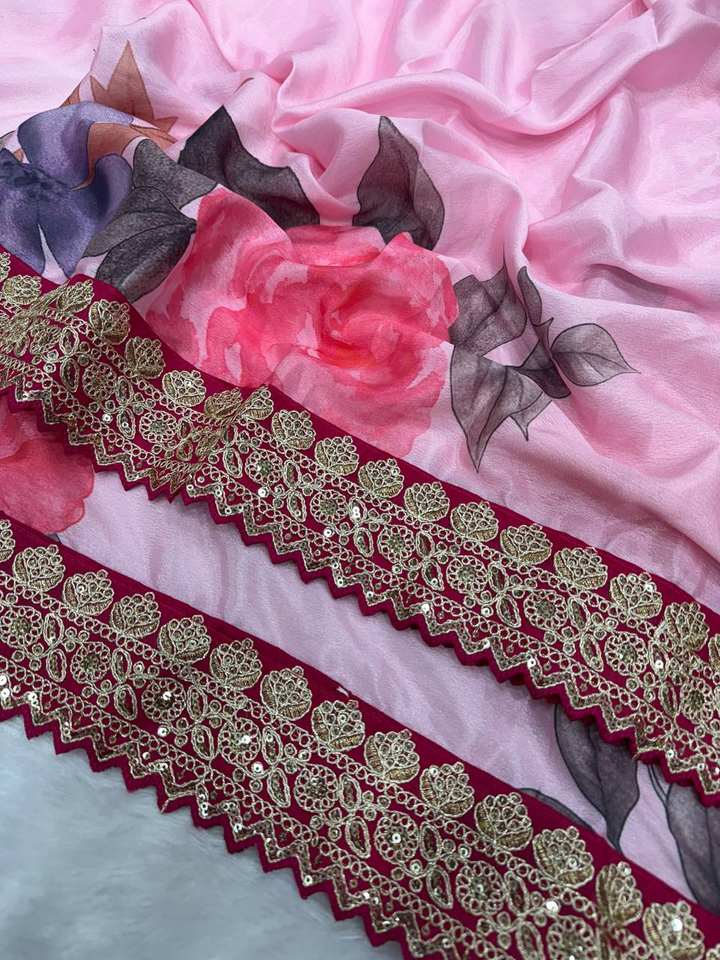 ส่าหรีผ้าไหมอินเดียใต้พิมพ์ลายดอกไม้สวยงามสำหรับงานแต่งงานในฤดูร้อนเทศกาลยืดได้
