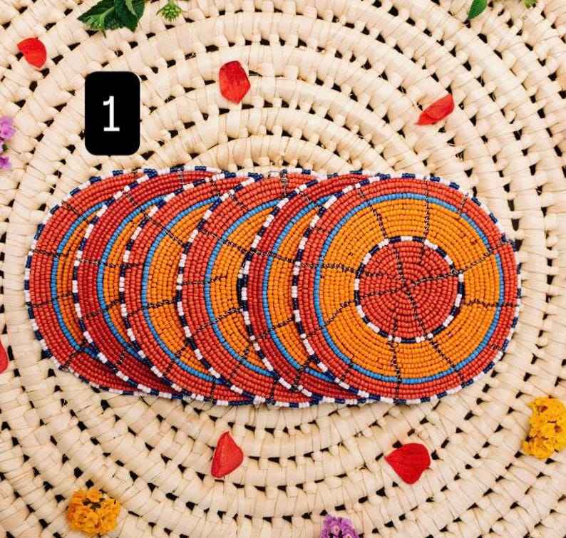 ชุดจานรองแก้วทรงสี่เหลี่ยม ดีไซน์ลายตารางทันสมัย สวยงาม ทำด้วยมือ ประดับลูกปัด เป็นมิตรกับสิ่งแวดล้อม สไตล์โบฮีเมียน
