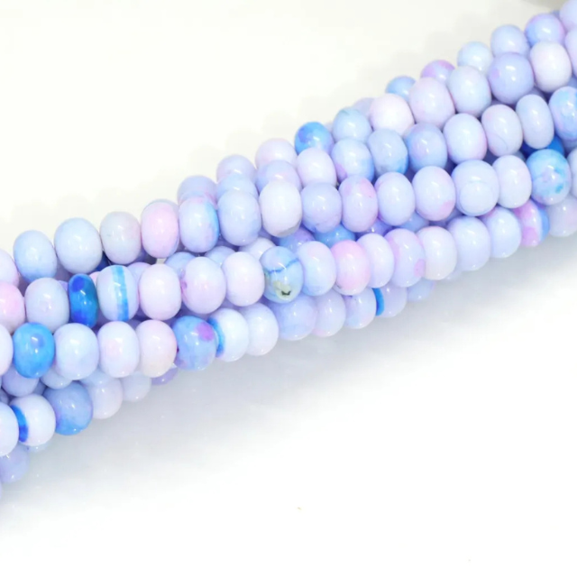 ลูกปัดโอปอลลาเวนเดอร์ทรงรอนเดลล์เรียบเนียนสวยงาม, สายยาว 15 นิ้ว ลูกปัดพลอยโอปอลลาเวนเดอร์, ลูกปัดโอปอลคุณภาพ AAA