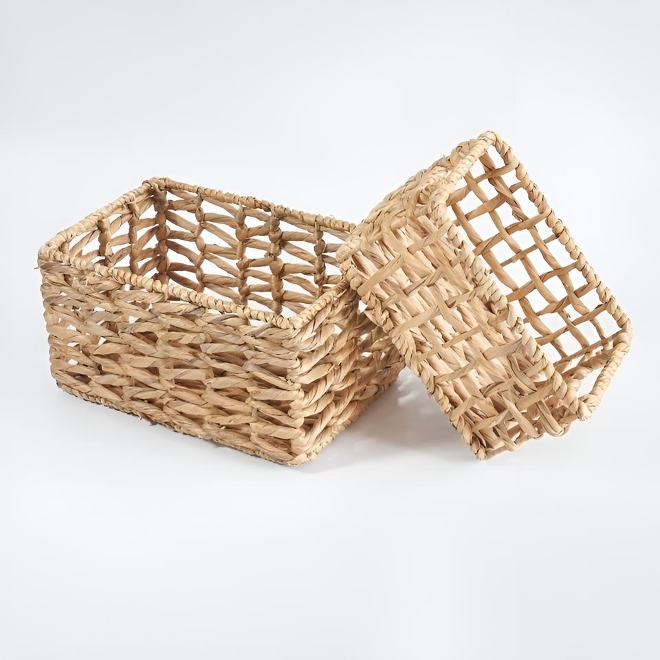 ตะกร้าผักตบชวาทรงหยักสวยงาม ขนาดเล็ก ตะกร้าสานด้วยมือสำหรับจัดเก็บเครื่องประดับ