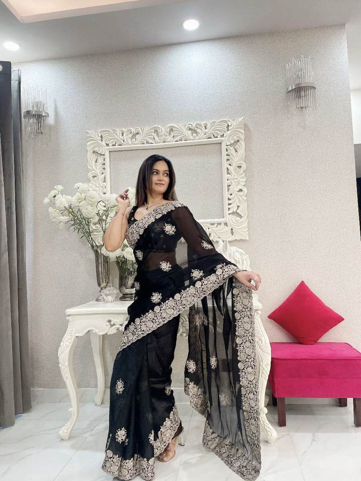 ส่าหรีผ้าไหมที่สวยงามด้วยการเย็บปักถักร้อย viscos งานด้ายและงานเลื่อมงานปาร์ตี้สวมใส่ Saree งานแต่งงานฟังก์ชั่นสวมใส่ Saree