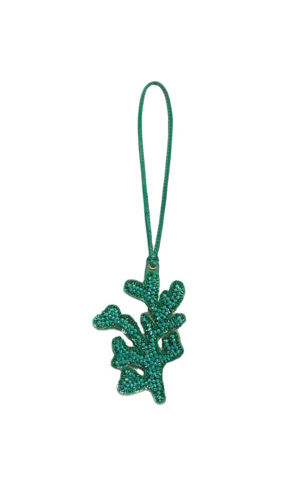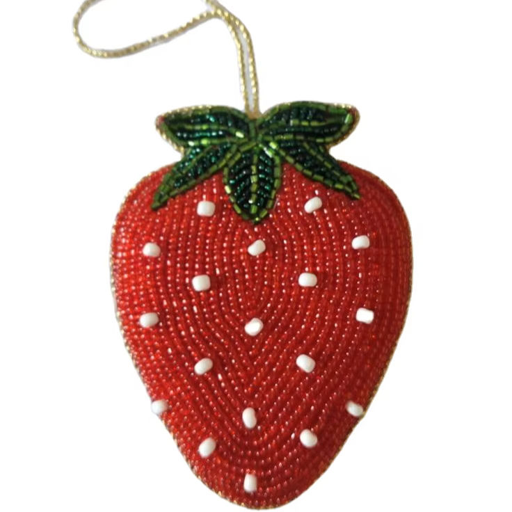 Beautiful strawberry design red and green coloured seed beaded embroidery keychain and keyring and bag accessories from India
