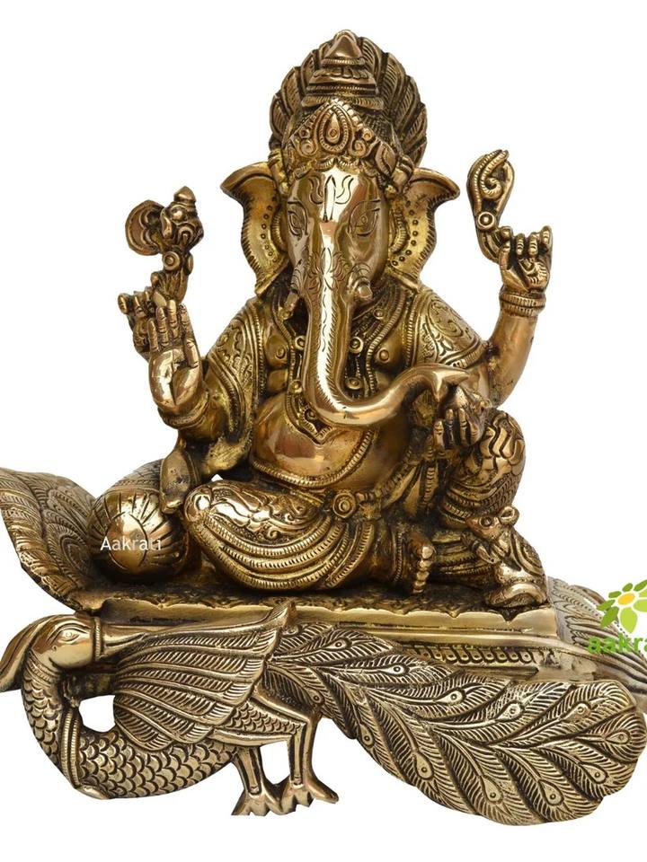 รูปปั้นพระพิฆเนศทองเหลืองที่ประดิษฐ์ขึ้นอย่างสวยงามสำหรับโฮมออฟฟิศและคอลเลกชันการตกแต่งภายในทางจิตวิญญาณ
