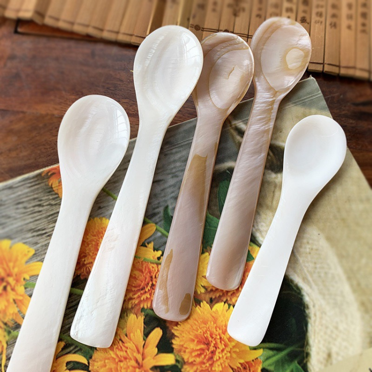ช้อนคาเวียร์หอยมุกที่ทำขึ้นอย่างสวยงามเครื่องใช้บนโต๊ะอาหารเปลือกธรรมชาติเป็นมิตรกับสิ่งแวดล้อมเหมาะสำหรับการใช้เป็นคาเวียร์หรือของหวาน