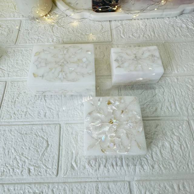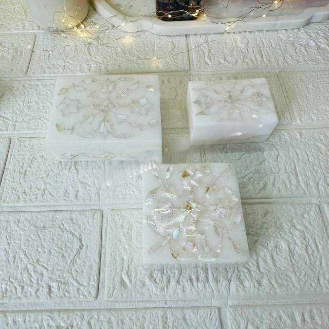 กล่องเครื่องประดับหินหินอ่อนทรงสี่เหลี่ยมฝังมุกธรรมชาติฝังแบบสั่งทำได้ตามต้องการบรรจุภัณฑ์สำหรับเก็บของพิมพ์ลาย